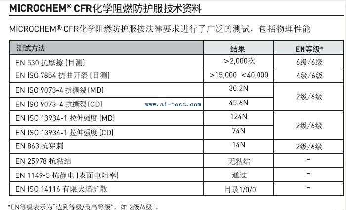 Microchem®CFR化學阻燃防護服符合以下歐洲標準
