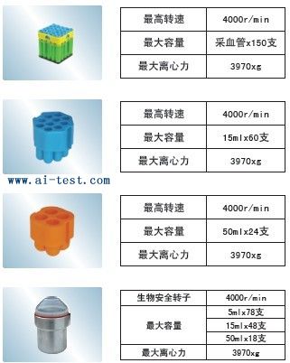 | AL1332767 | 2號水平轉子:最高轉速:4000r/min;最大離心力:3970×g;適配器規格及容量:500ml×6支;品牌:中國 | 1 | 洽詢 | 洽詢 | 備注 | |