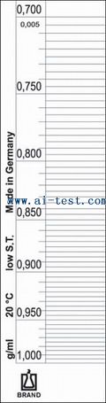 貨號規格AL1701730液體比重計,用于查找比重范圍,0.700-1.000g/cm³,刻度:0.005g/cm³AL1701731液體比重計,用于查找比重范圍,1.000-… |